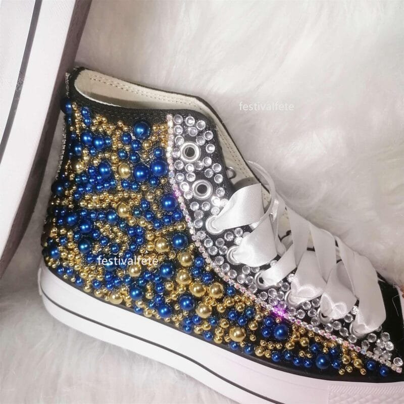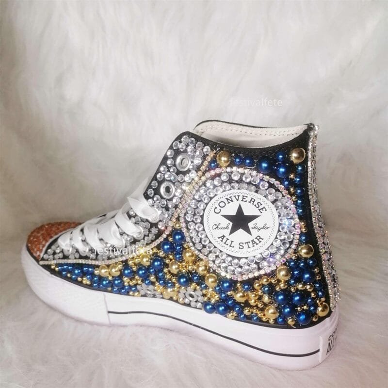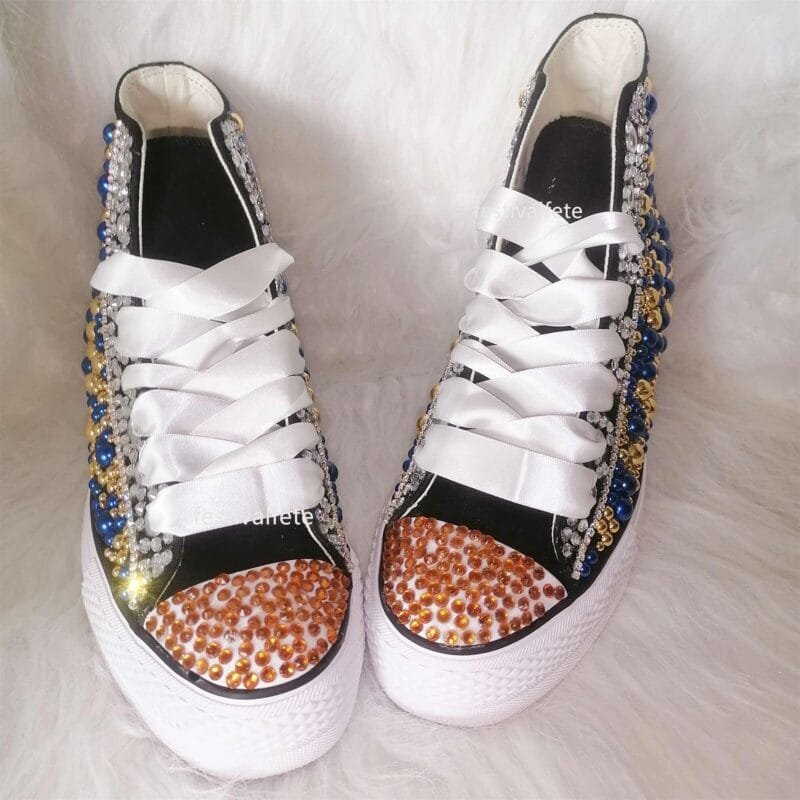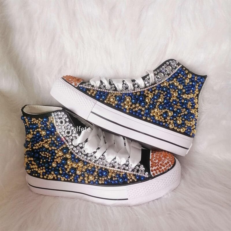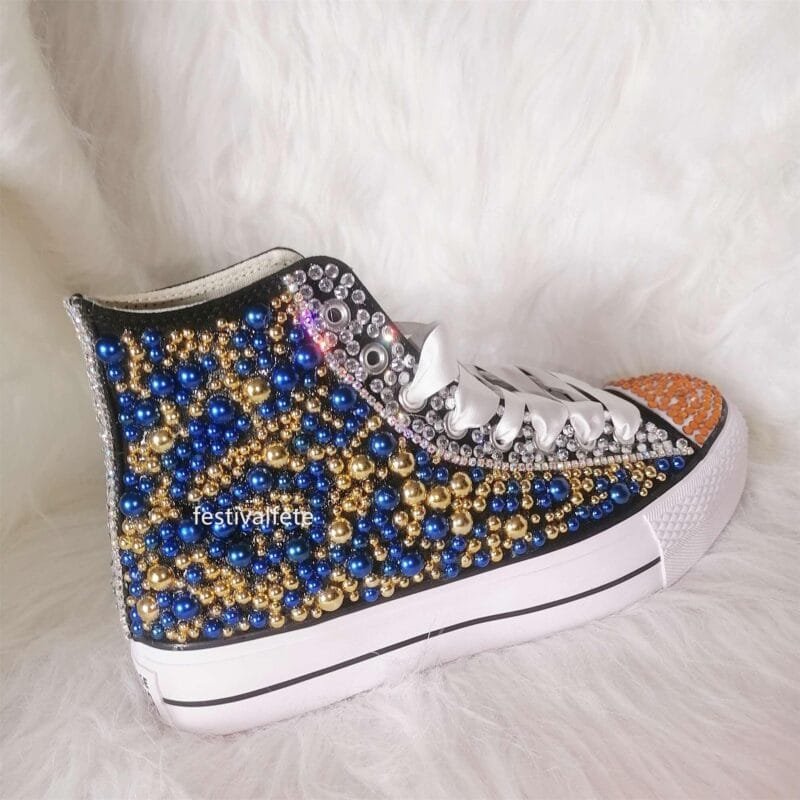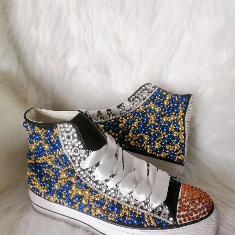 • Handmade with Love: Fully pearl & rhinestone embellished sneakers with care, perfect for a unique gift.