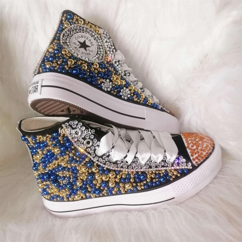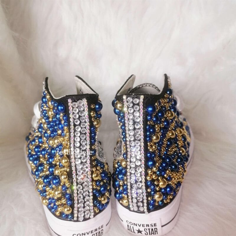 Bling Chuck For Bride -Custom Chuck Wedding Shoes -Gold & Blue